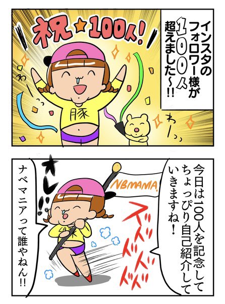 「インスタのフォロワー様100人記念!」 インスタの漫画アカウントの フォロワー様が100人超えました! ありがとうございます!嬉しい😆! 今更ながら 自己紹介してみたよ漫画👩🎨🍣 #キミが笑えばそれでイイ #エッセイ漫画 #漫画が読めるハッシュタグ #イラスト #illustration