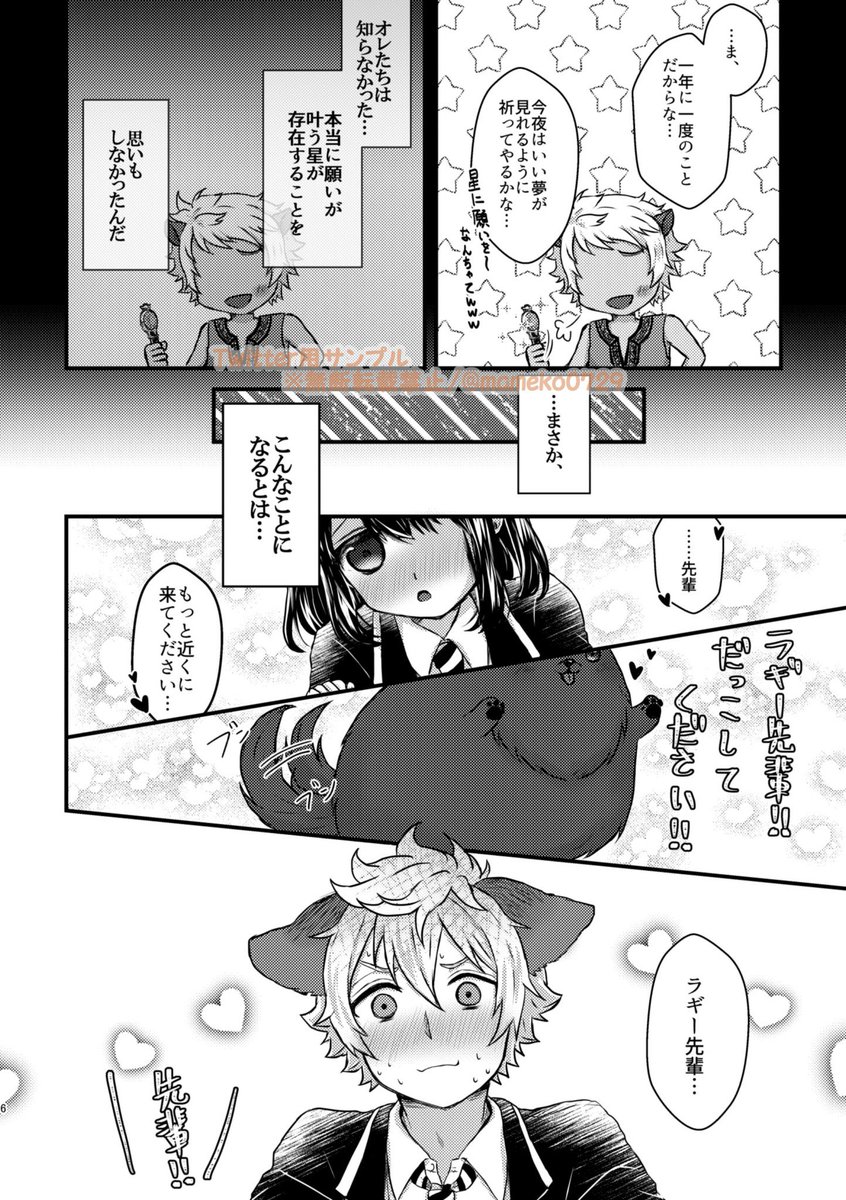 #twstプラス #キミとドーナツ_HBD 【宣伝&サンプル】(1/3) 2022年4月18日ラギ監♀webオンリー「Donut with You!-Birthday Special-」 にて展示公開&頒布致します🐆🌸 不思議な星の力で監督生♀(ヒト)と監督生♀(ポメ)に挟まれてユウくんサンドを堪能する🐆のゆるい漫画