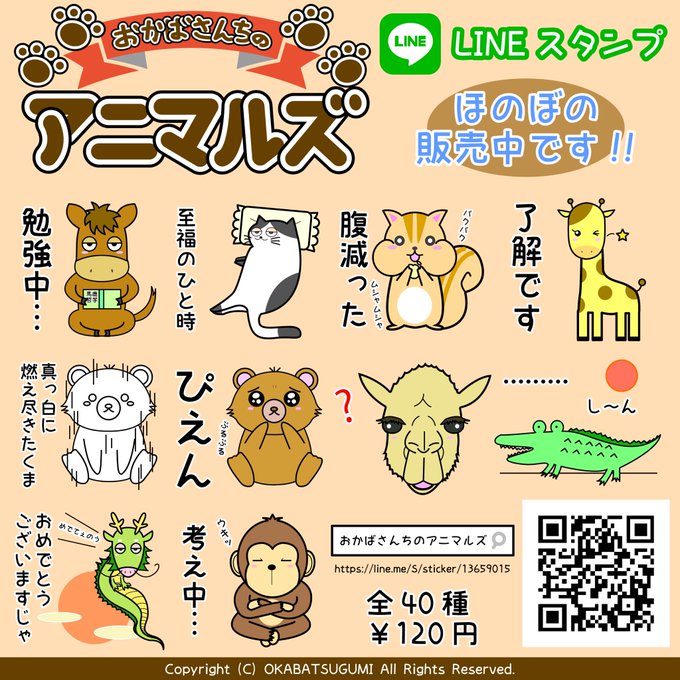 LINEスタンプを販売してます! #おかばさんちのアニマルズ の、癒されほのぼの日常スタンプです! ↓良かったら見てやってください! line.me/S/sticker/1365… #LINEスタンプ #LINEスタンプ販売 #イラスト #キモかわいい #キュート #ほのぼの #可愛い #キモ可愛い #面白い #動物 #ぴえん