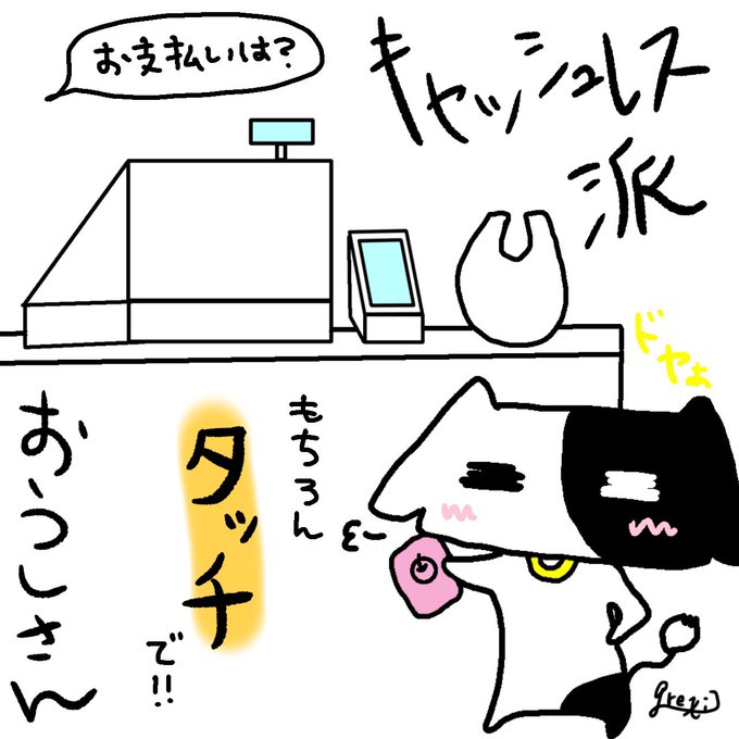 お昼ご飯コンビニに買いに行ってきたよ! もちろんキャッシュレスでね!!( *¯ ꒳¯*)← #おうしさん #お動物さん #ゆるキャラ #ゆるいイラスト #絵描きさんと繋がりたい #イラスト好きと繋がりたい #キャッシュレス