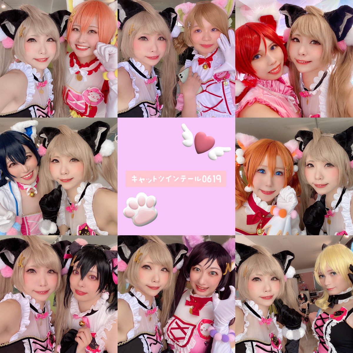 ⚠︎コスプレ とても遅くなってしまったけど、、 可愛いみんなとツーショ撮って頂けたので🥺💘 キャットツインテールみんな可愛かったです❣️ 9人全員集まれたことに感謝🙏💗 #キャットツインテール0619