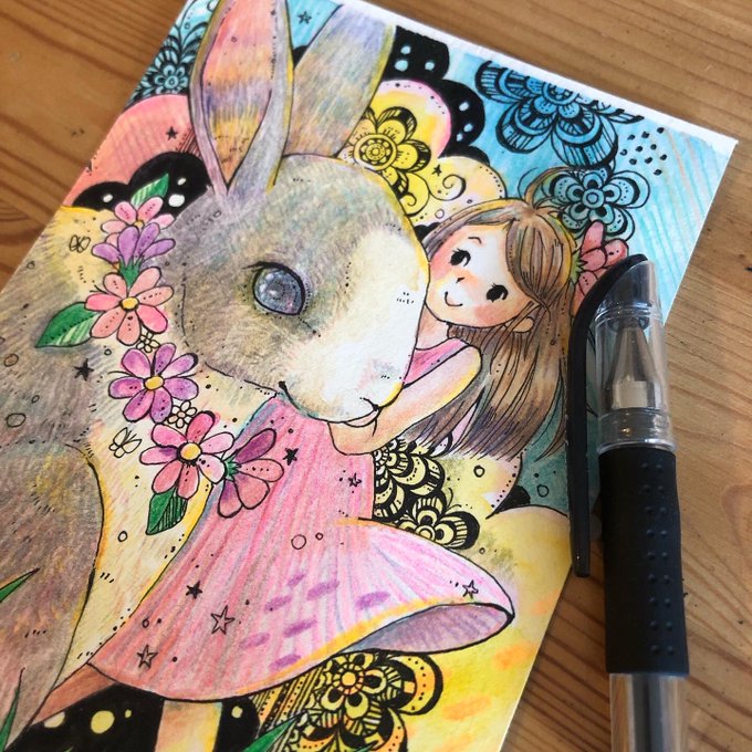 女の子とウサギ🐰 Girl and Rabbit イラスト原画を阿佐ヶ谷のca*n*ow forestさんに納品します! 6月末にドイツから発送予定✈︎ 7月半ばに到着かな☺️ 是非お店の方にもお越しくださいませ🏠 #illustration #art #animals #animalillustration #girl #rabbit #キャナウ #イラスト