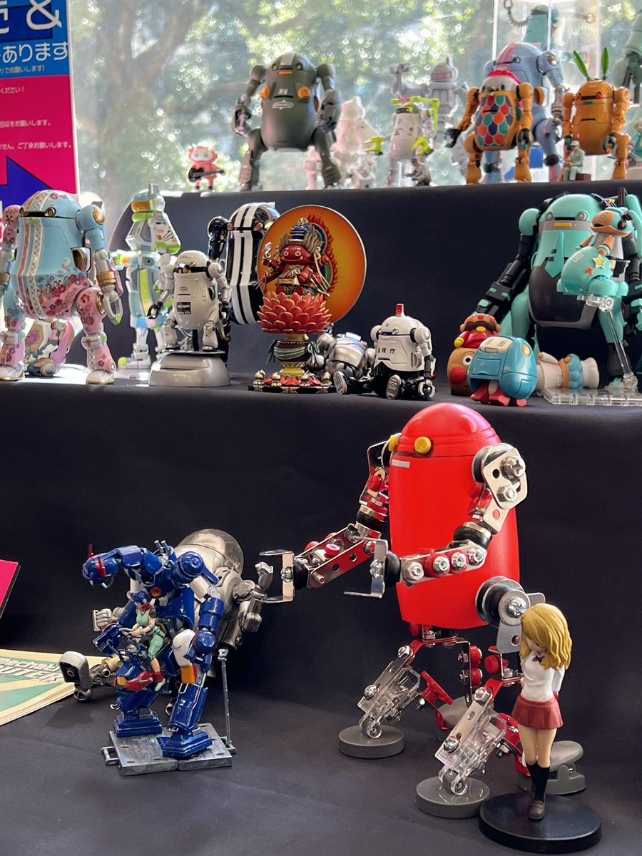 キャビコさんのブースにメカトロポリスの試作品も展示されています。大河原邦男先生デザインロボコーナーがありますので是非チェックを!キャビコグラフィックスやチョイプラ各種など会場販売物も沢山あります! #メカトロウィーゴ #キャビコ #静岡ホビーショー2023
