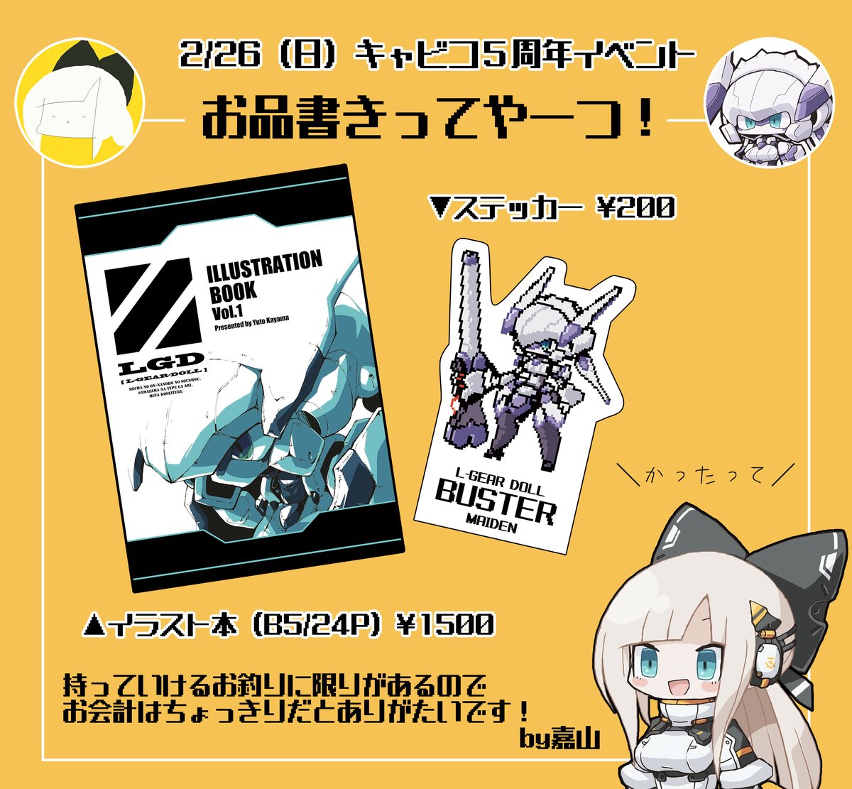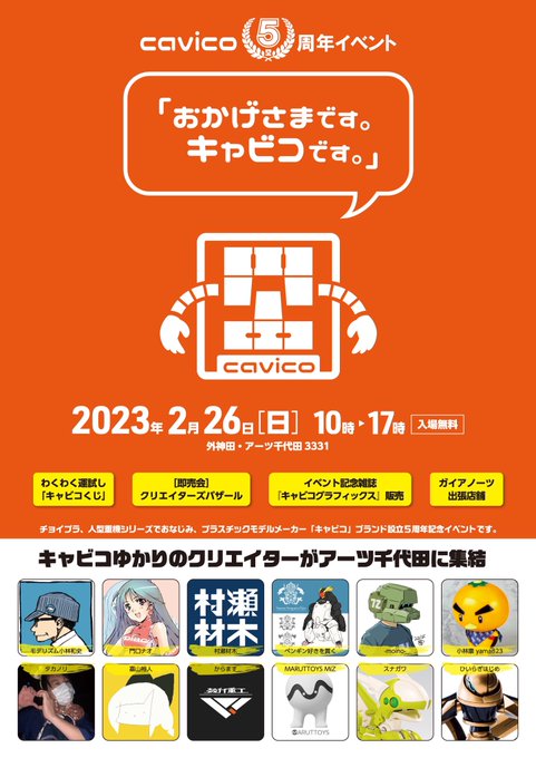 【ブログ更新】2/26はキャビコ5周年イベントに! 自分関連の展示、物販情報などまとめました。是非チェックの上ご来場ください〜。準備ギリです。 moderhythm.blog26.fc2.com/blog-entry-221… #メカトロウィーゴ #キャビコ