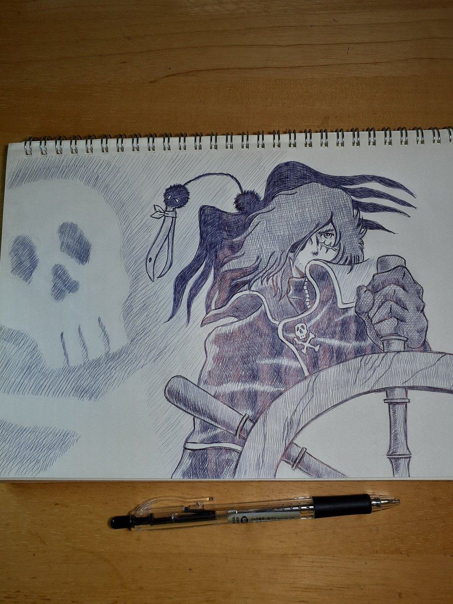 訃報に衝撃を受け、描かずにはいられなかった。 連載時は「プレイコミック」という青年誌で購入は当時の中高生にはハードルが高かった。 そして同時期に連載が始まってた「銀河鉄道999」の劇場版にハーロックが登場した時は震えた。 #松本零士先生 #キャプテンハーロック