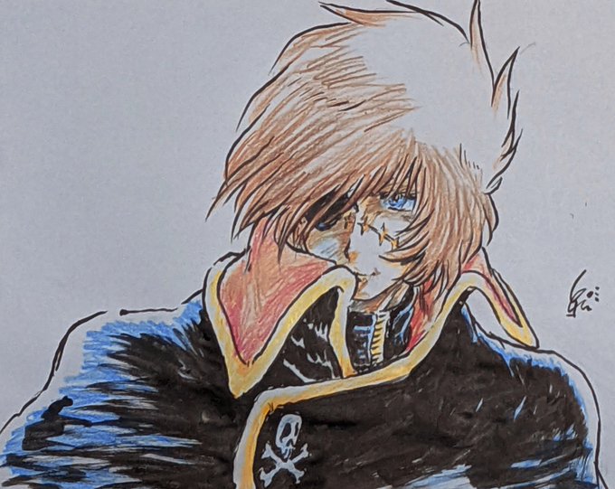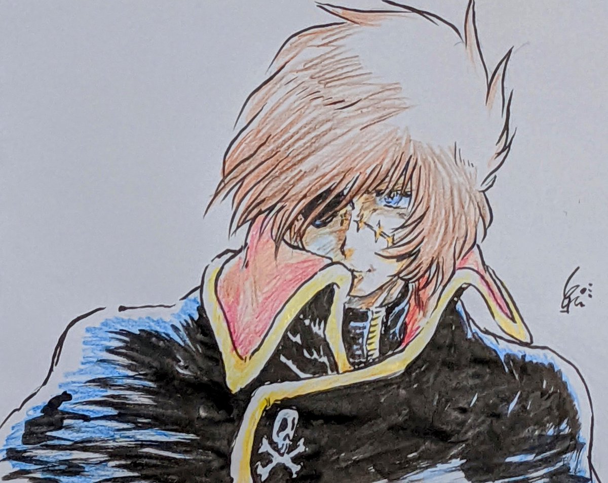『宇宙の海は俺の海♪』 暑い日には海のある街に憧れる海なし県民です。 ――という訳で、キャプテン・ハーロック(劇場999版)を葉っぱアートにしてみました。 #葉っぱアート #キャプテン・ハーロック #劇場版銀河鉄道999 #井上真樹夫