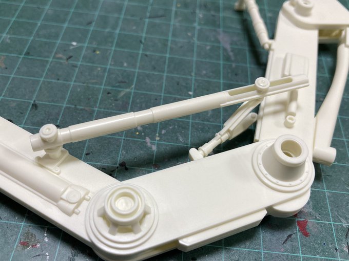 キャメル、バーの留め具の丸いパーツが浮き上がって、接着剤が固まるまで押さえなきゃイカン!と思ったけど、Y字のパーツを一時的に脚から外せば浮き上がらなくなったー。これで半乾きのまま寝てもオッケー。 #模型 #プラモデル #マシーネンクリーガー #sf3d #mak #maschinenkrieger #キャメル