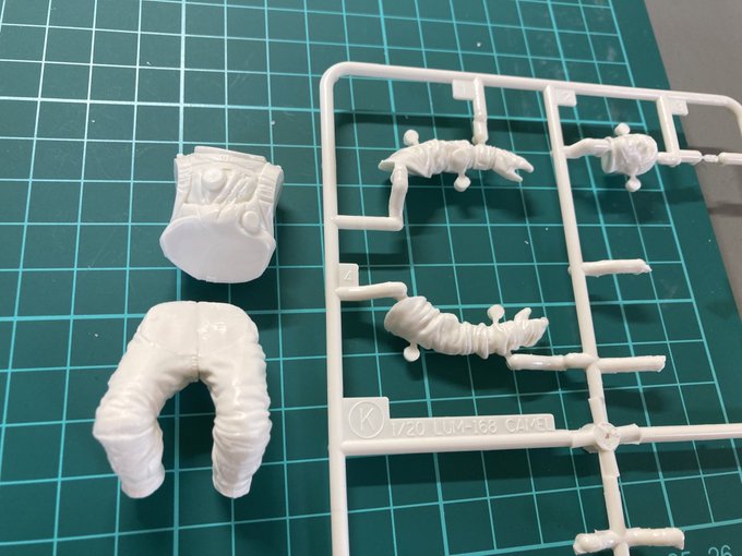このパイロットフィギュア、パーティングラインは腕だけ消しておけば十分な気がする。作るの2度目だと手抜きをしたがりますね。ところでラインって打ったら勝手にラインズになるのどうして?謎に包まれた予測変換・・・ #模型 #プラモデル #マシーネンクリーガー #maschinenkrieger #キャメル
