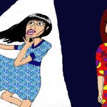 新作の挿絵習作 。 相方の過剰なアドリブになすすべのないともえちゃん。でも、誘ったのは自分だからしかたありません。 #イラスト #絵描き #ファッションイラスト #挿絵 #illustration #artistonTwitter #character #アナログイラスト #キャラクター画 #昭和レトロ