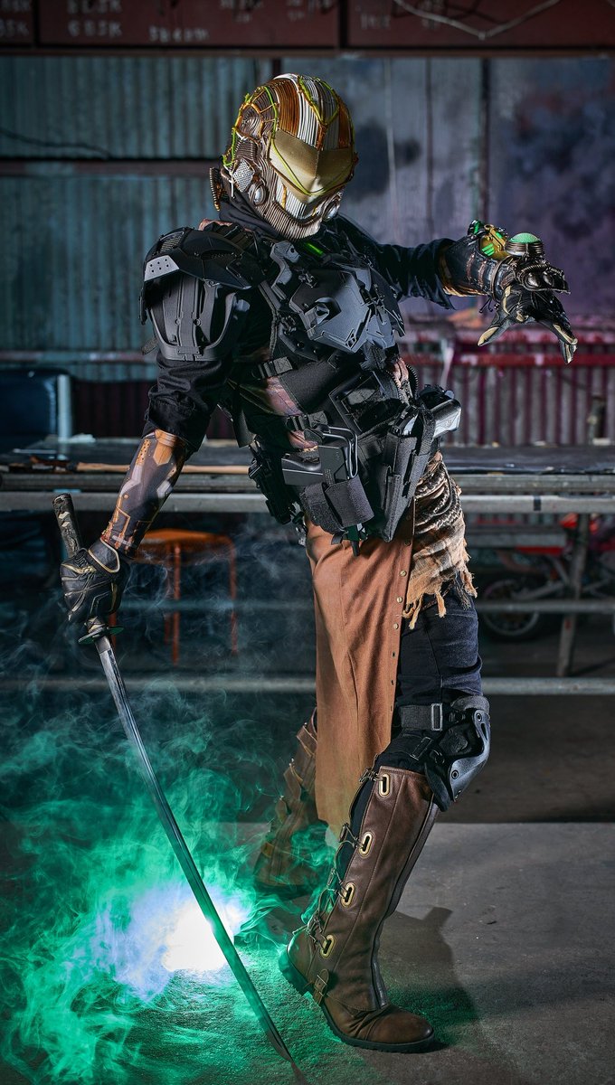 #キャラクター設定を忙しい人の為にざっくり説明する サメっ子隊長 CEI戦闘部隊隊長で、サメのマスクが特徴。 チーズケーキを焼き、部下に配るのが趣味。 銃より刀派で、首から繋がる専用の脊髄強化装置をつけている。 多くの自キャラとの繋がりがあるキャラ。