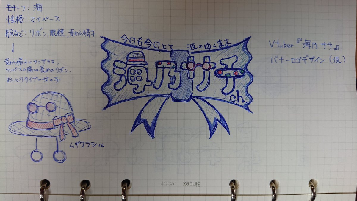 オフ会でごちわさん発案の1hキャラデザゲーム! え? ダウトさん、キャラデザできるのかって? 特殊すぎる形でゴリ押ししたに決まってるだろ、HAHAHA← お題:海、マイペース、リボン、眼鏡、麦わら帽子 #キャラデザスクランブルゲーム #一軒家だいたい貸切お絵描きオフ