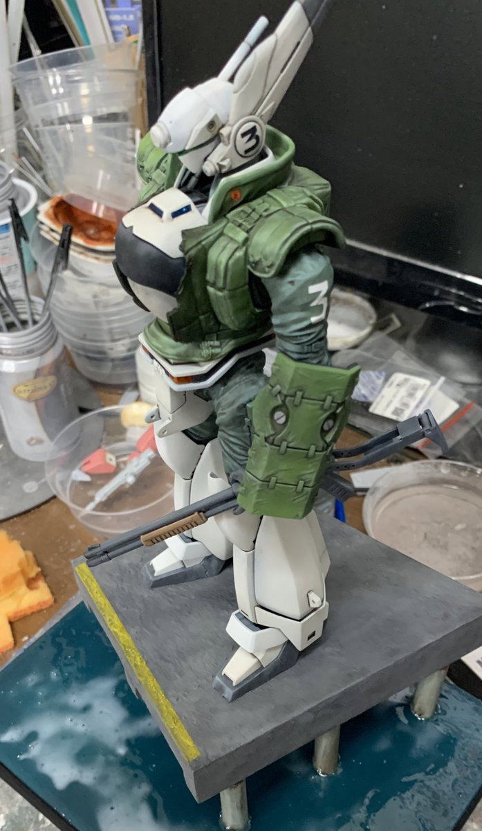 #キャラプラコン2023 に出品したアオシマ製リアクティブアーマーイングラムをちょっと上から。実は手に握っているライアットガンはアオシマ製ではありません。 #パトレイバー #パトレイバー模型部 #アオシマ