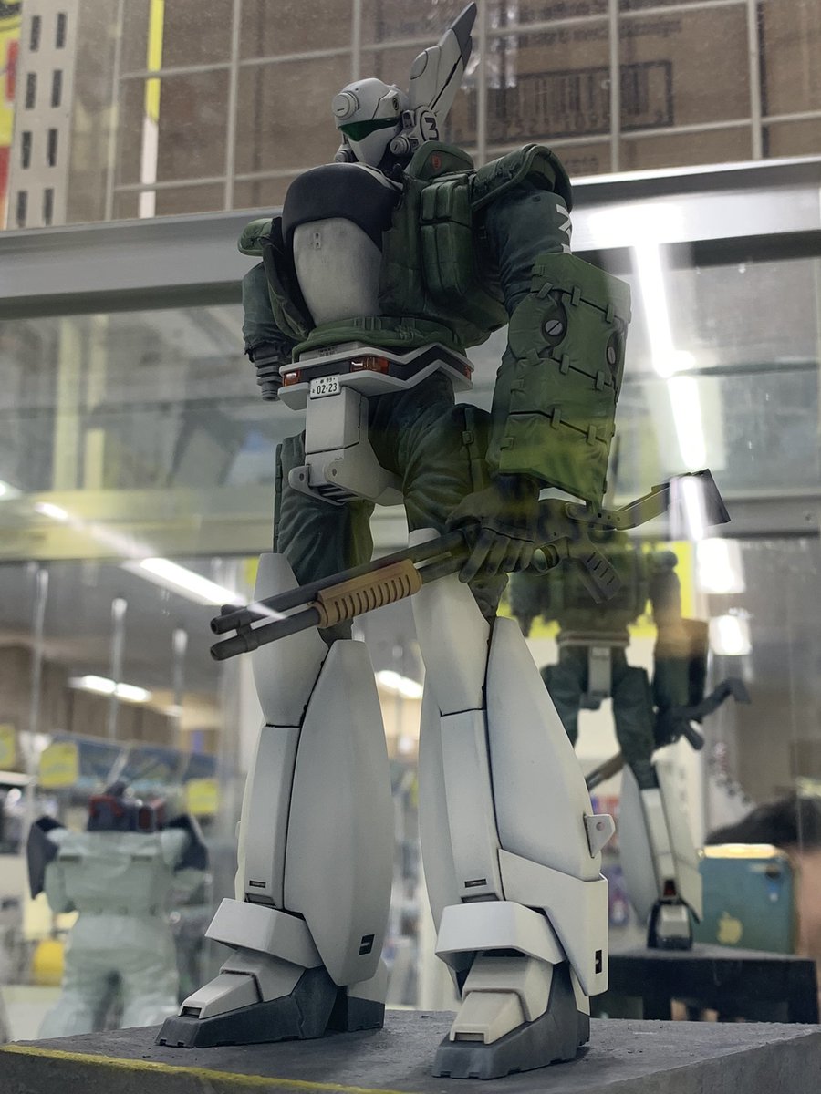 #キャラプラコン2023 に出品したリアクティブアーマーイングラムをなかなか観に行けていません。撮り溜めていた写真を眺める日々です。版権っぽいよいショットが撮れました。秋葉原に行かれた際はイエローサブマリンにぜひお立ち寄りを。 #パトレイバー模型部 #パトレイバー