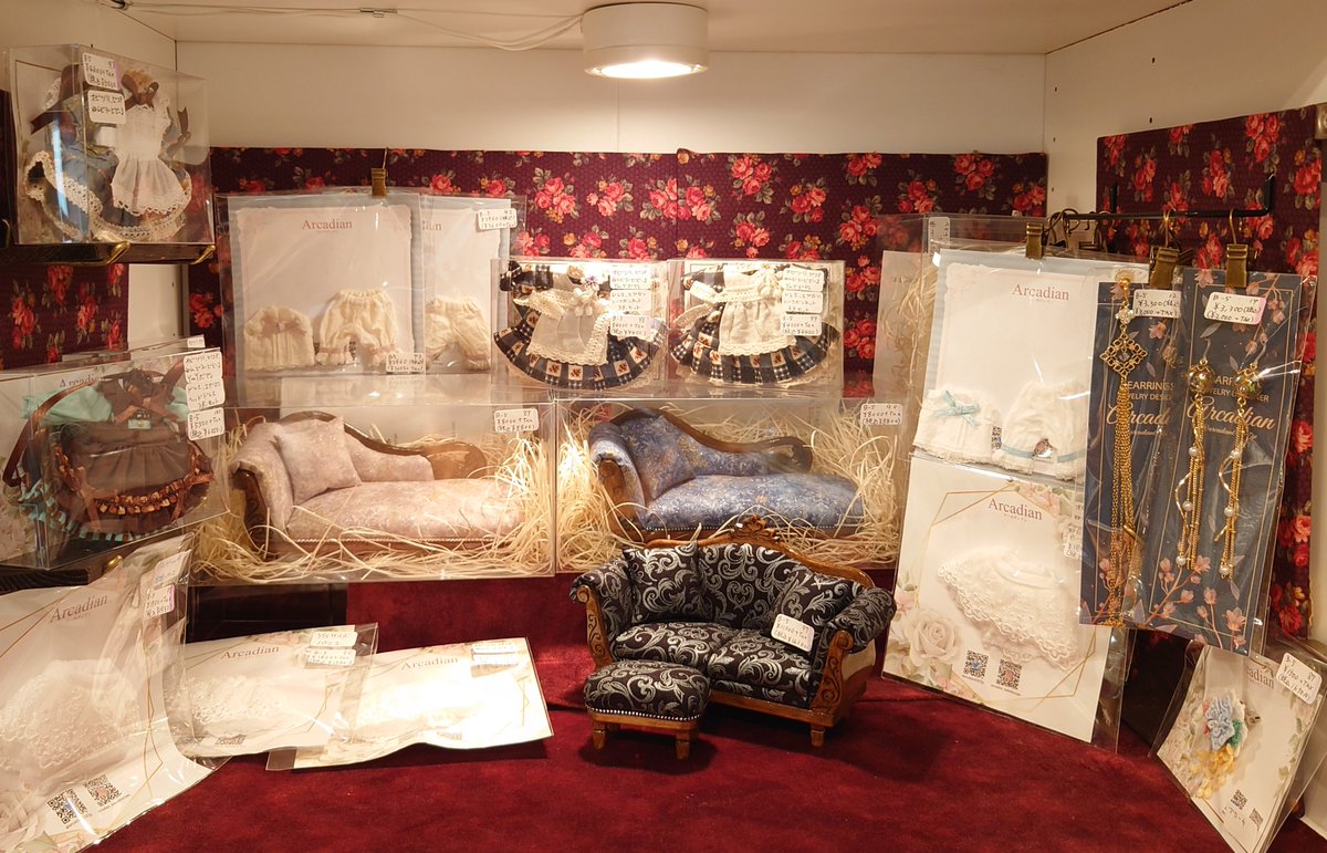 設営終わりました✨💖 今回は #ハルモニアブルーム のアイテムもありますよ💞 是非ご覧くださいね❗✨ 9月15〜27日 キャラメルキューブショコラ(池袋) 全期6 Arcadian #キャラメル_創作 #dollぬいShow #オビツろいど #オビツ11