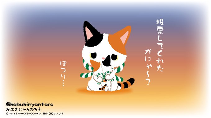 わぁ!みんにゃ、すごいのにゃん。ボクももっと頑張りますにゃ #サンリオキャラクター大賞2023 #キャラ大2023 #中間発表 ▼投票はコチラから ranking.sanrio.co.jp/characters/kab…