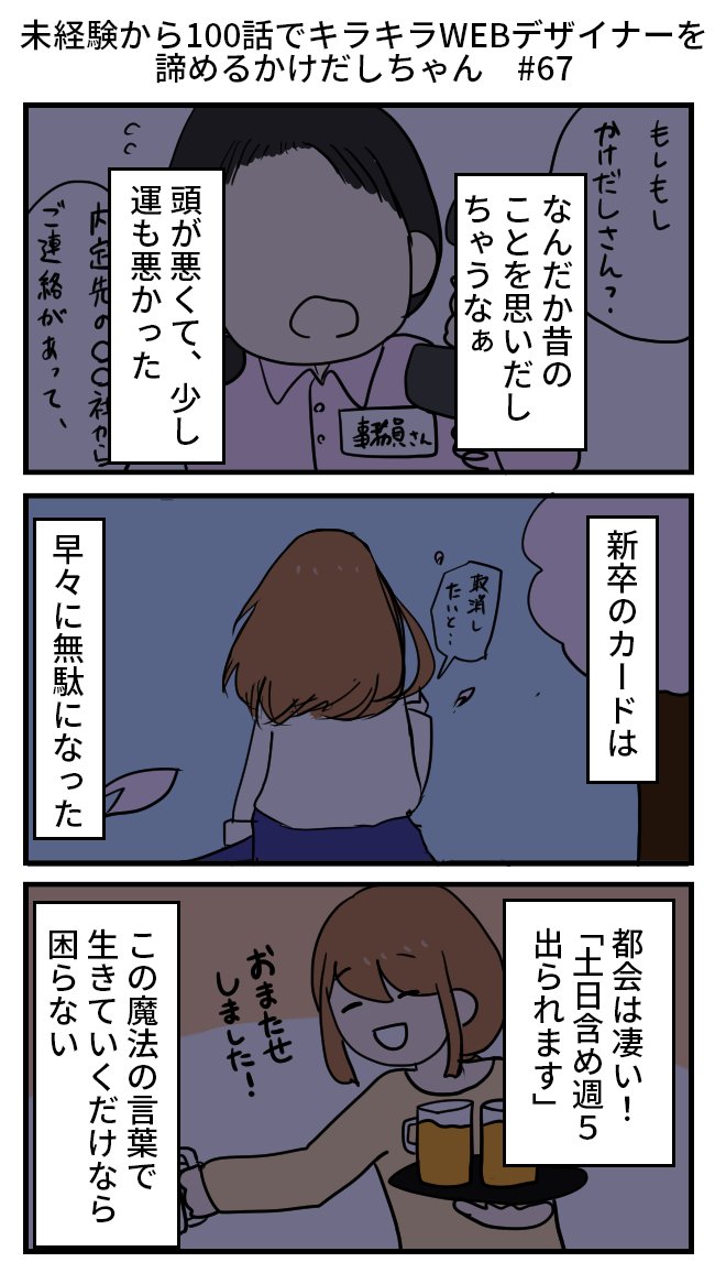 未経験から100話でキラキラWEBデザイナーを諦めるかけだしちゃん その67 なんだか、昔のこととか色々思い出しちゃったよ~! ちゃんと働いてたのに、いつの間にかお給料が上がる見込みを無くしちゃったし、お仕事にもつきにくくなっちゃったかも~??😣💦 #漫画が読めるハッシュタグ #キャリア