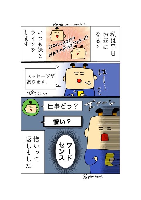 「ワードセンス」 すうぺいのLINEのおかげで頑張れる節はある。 #漫画が読めるハッシュタグ #LINE #姉妹 #コミックエッセイ #エッセイ漫画 #社畜 #仕事 #キャリアウーマン #癒しの時間 #ねいねいとすうぺい #イラスト #イラスト好きな人と繋がりたい
