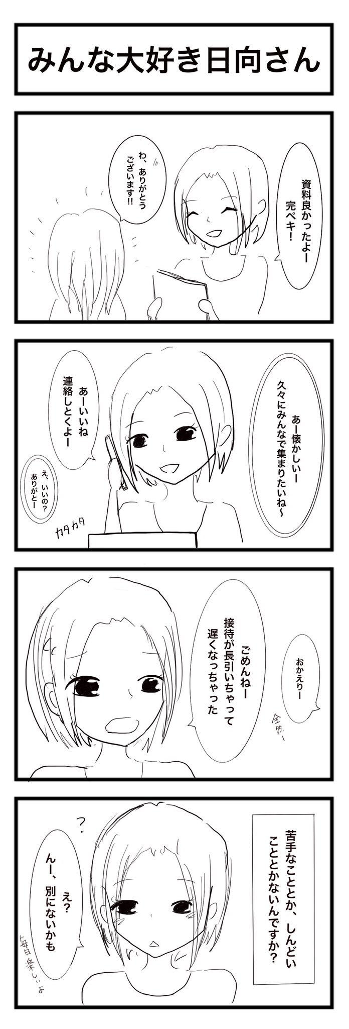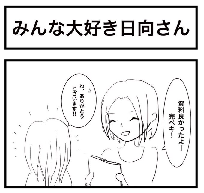 「みんな大好き日向さん」 #四コマ漫画 #漫画 #イラスト #漫画が読めるハッシュタグ #日常 #漫画好きと繋がりたい #イラスト好きな人と繋がりたい #キャリアウーマン #リア充 #イラスト初心者