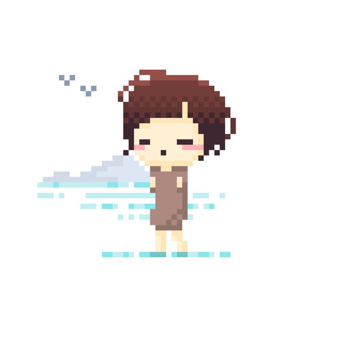 私事ですが... \\\琵琶湖で1日中裸足でいて周りをどん引きさせた事あります。 /// ※そろそろ琵琶湖で泳ぎたい季節ね #pixelart #pixaki #ピクセルアート #ドット絵 #キャンプ #LINEスタンプ #キャンプ好きな人と繋がりたい #キャンプのある生活 #琵琶湖 #マイアミ浜オートキャンプ場 #nft