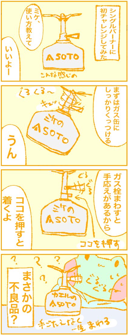 【第35話△】はじめてのシングルバーナーでトラブル🤔❓【初心者キャンプ】 #キャンプ #キャンプ好きと繋がりたい #キャンプ好きな人と繋がりたい #キャンプギア #漫画が読めるハッシュタグ #マンガが読めるハッシュタグ #絵日記