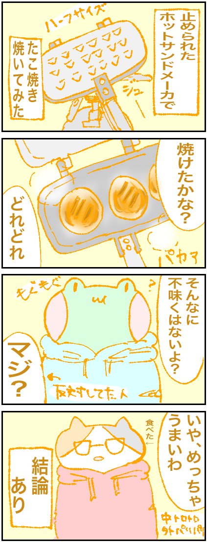 【第37話△】ホットサンドメーカーでたこ焼きを焼いてみた結果【初心者キャンプ】 たこ焼き〜♪ #キャンプ好きと繋がりたい #漫画が読めるハッシュタグ #コミックエッセイ 毎日更新中‼️最新話はこちらから↓ hujirokoha12.livedoor.blog