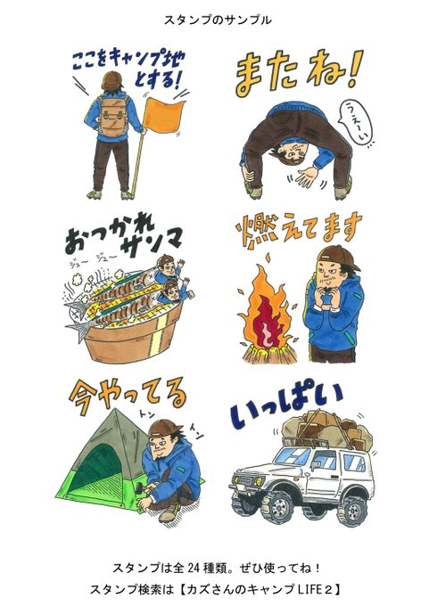 キャンプシーズンなので! キャンパー向けラインスタンプ 「カズさんのキャンプLIFE」 「カズさんのキャンプLIFE 2」 よろしくお願いしやすッ。 #キャンプ好きと繋がりたい #キャンパー向けラインスタンプ #キャンプシーズン到来 #キャンプイラスト