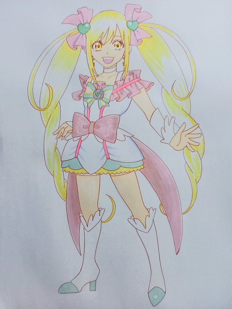 #お絵描き好きさんと繋がりたい #お絵描き好きな人と繋がりたい #絵柄好みって人にフォローされたい #スマイルプリキュア #キュアハッピー #キュアエコー 過去絵なんだけどこの塗り結構気に入ってます