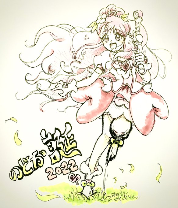 重なる二つの花!キュアグレース! お誕生日おめでとう! #講談社おともだち ピンクに掲載されたイラスのラフです。みんなで楽しくフルーツパーティ! 優しくて芯の強いのどかが大好きです〜! #キュアグレースおめでとう #3月9日はキュアグレースの誕生日 #プリキュア #precure