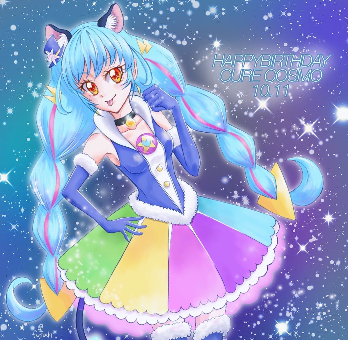 #キュアコスモ生誕祭2022 /#キュアコスモ生誕祭 #ユニ誕生祭2022 /#ユニ誕生祭 過去絵だけど企画で使ってツイートはしてなかったと思う? そしてベロだし大好き野郎だったわw にゃん(๑>◡<๑)