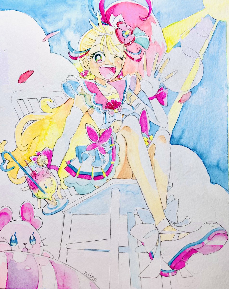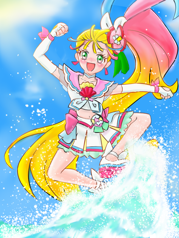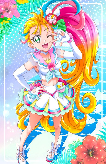 1日遅れてしまってごめんね!今でもずっと「Viva! Spark!トロピカル~ジュ!プリキュア」を聴いていると自然に元気と涙が出るのでキュアサマーちゃんにお礼のイラストです🍹🌺☀️ 8月めちゃくちゃ暑そうだけど、トロピカってこー!!!🔥✊ #キュアサマー生誕祭2023