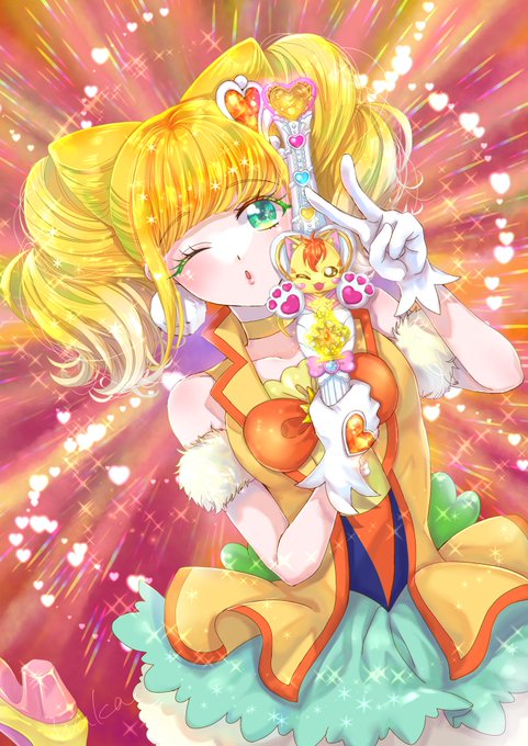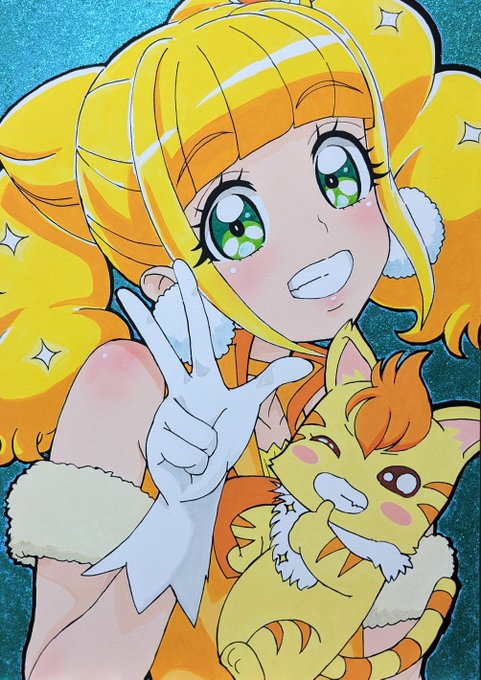 溶け合う二つの光!キュアスパークル!🐱💛 #プリキュア #ヒーリングっとプリキュア #ヒープリ #キュアスパークル #絵描きさんと繋がりたい #プリキュア好きさんと繋がりたい #プリキュアファンアート #平光ひなた (色合い気に食わなかったので再掲)
