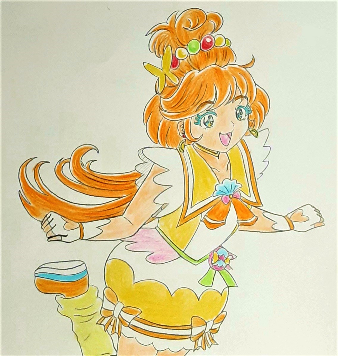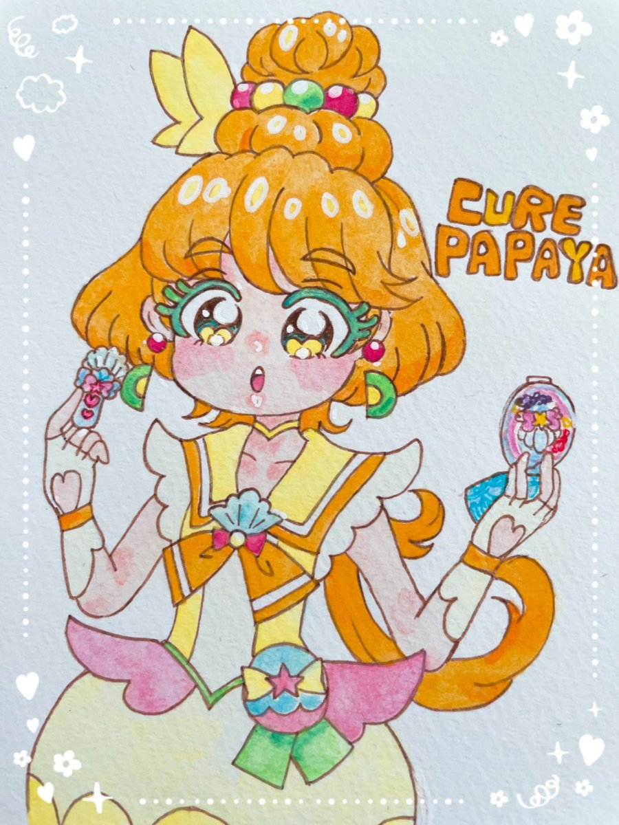 #キュアパパイアおめでとう #キュアパパイア生誕祭2021 #一之瀬みのり生誕祭2021 #precure #トロピカルージュプリキュア #トロプリ 水彩塗り挑戦中。あおり構図で キュアパパイアお誕生日おめでとう!