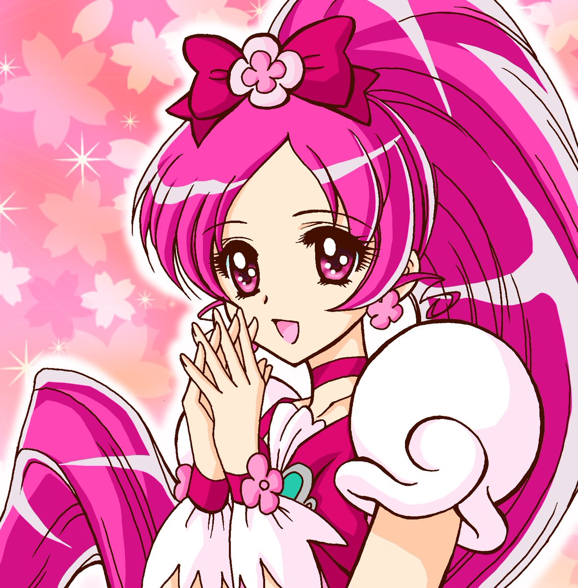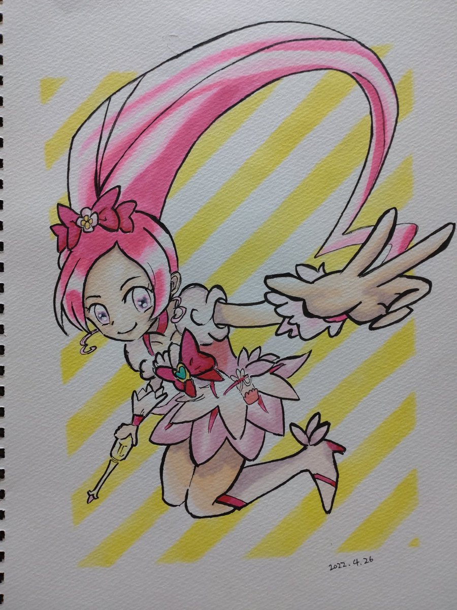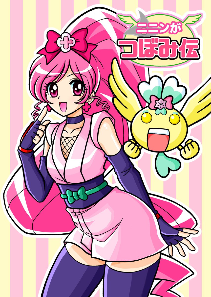 #見た人も無言でなにか日本あげる というタグがあったので、この絵をあげようと思ったのですが、無言だとなんだかわからないものに…… 一応中の人ネタです😅 #キュアブロッサム #ニニンがシノブ伝