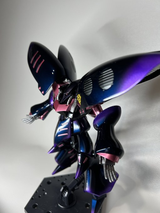 #ガンダムアーティファクト #キュベレイ 完成しました✨ ポーズ変更、ファンネルエフェクトなど改修して筆塗りで塗装しました😊 リプ欄に画像貼ります。 よろしければ見てってください🙇 🔽続く