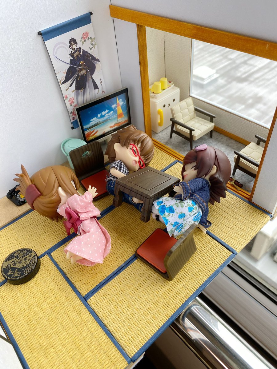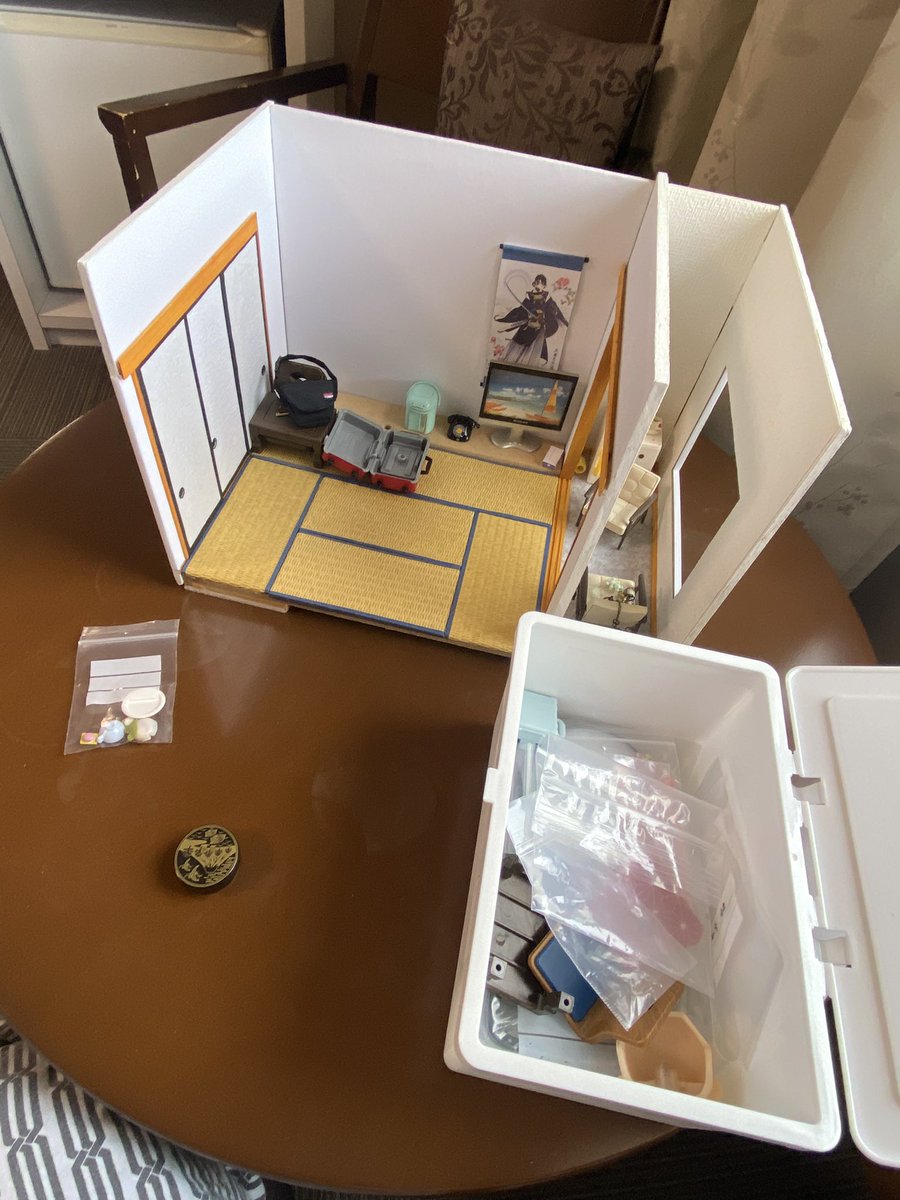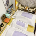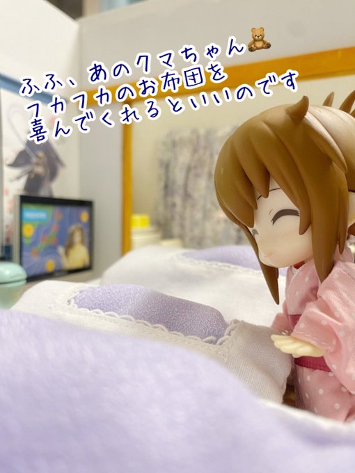 お布団3組のボタン付け終わりました😊 和室に家具を置いてお布団敷いてみました😊 それでもぎゅうぎゅうなんですけど少しはマシに😆💦 グリちゃん、フカフカお布団嬉しいかな? みんなで川の字でお話しして寝ましょうね😊 おやすみなさい☺️ #キューポッシュ #子ぐまのグリちゃん #キュポ和のお宿