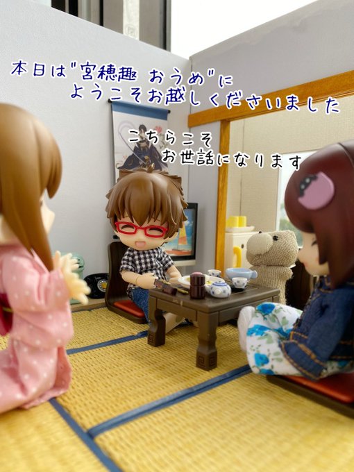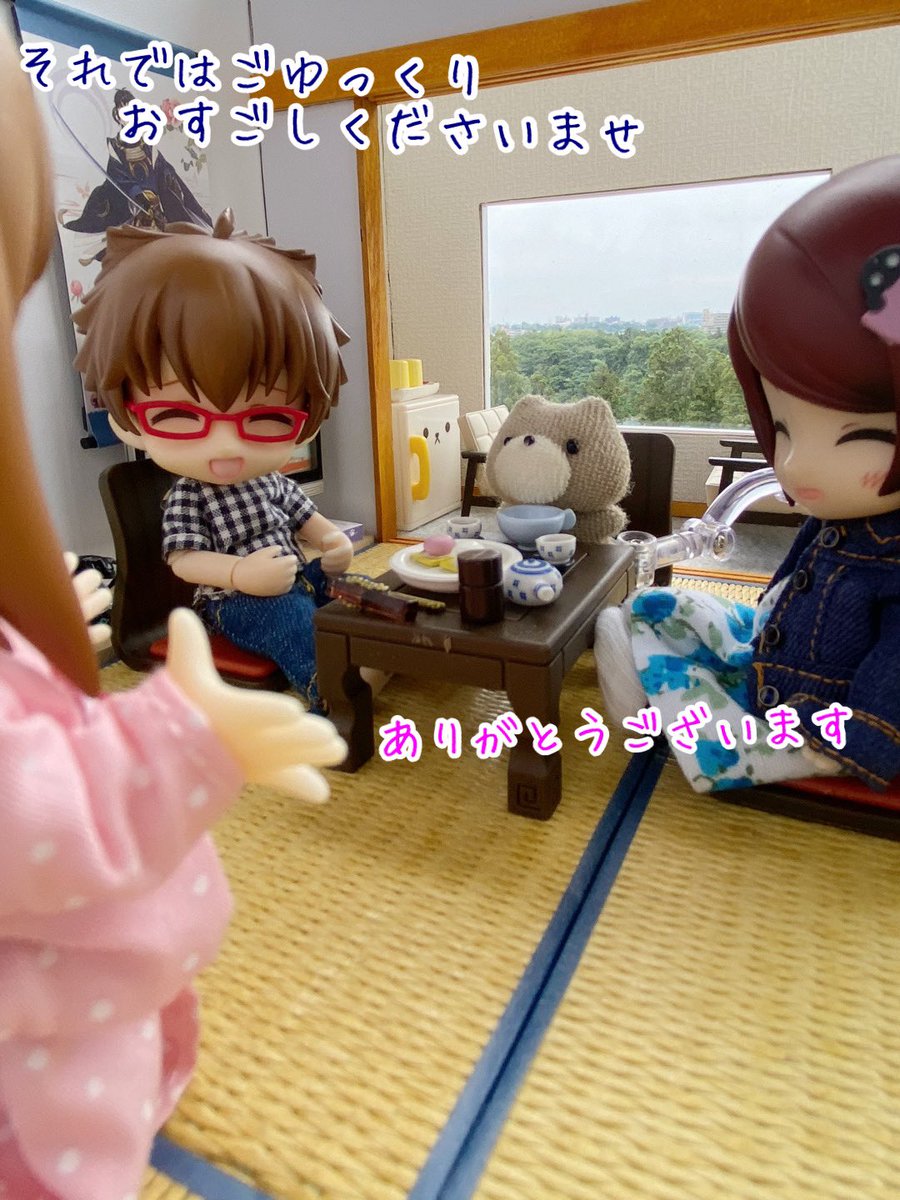 グリちゃんたちも電ちゃんに案内されてお部屋に通されましたよ😊 お茶を淹れてもらってひと休みです☺️ グリちゃん、あとでお風呂に行こうね😆💕 #キューポッシュ #子ぐまのグリちゃん #キュポ和のお宿