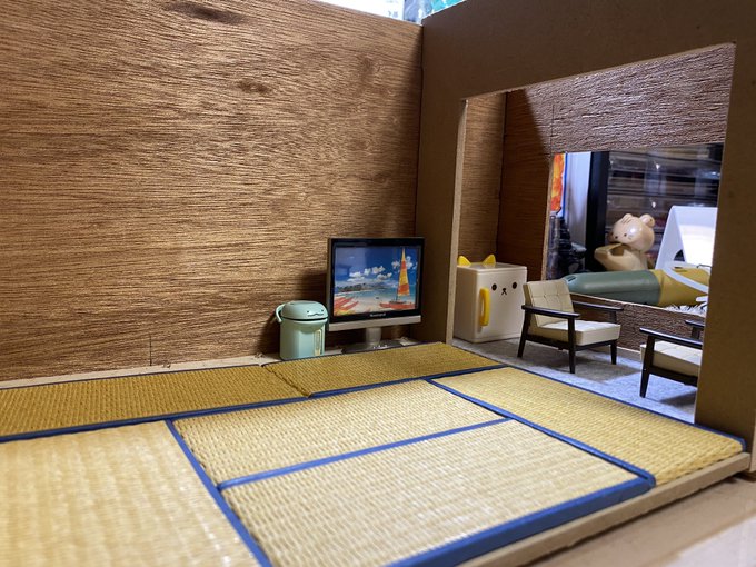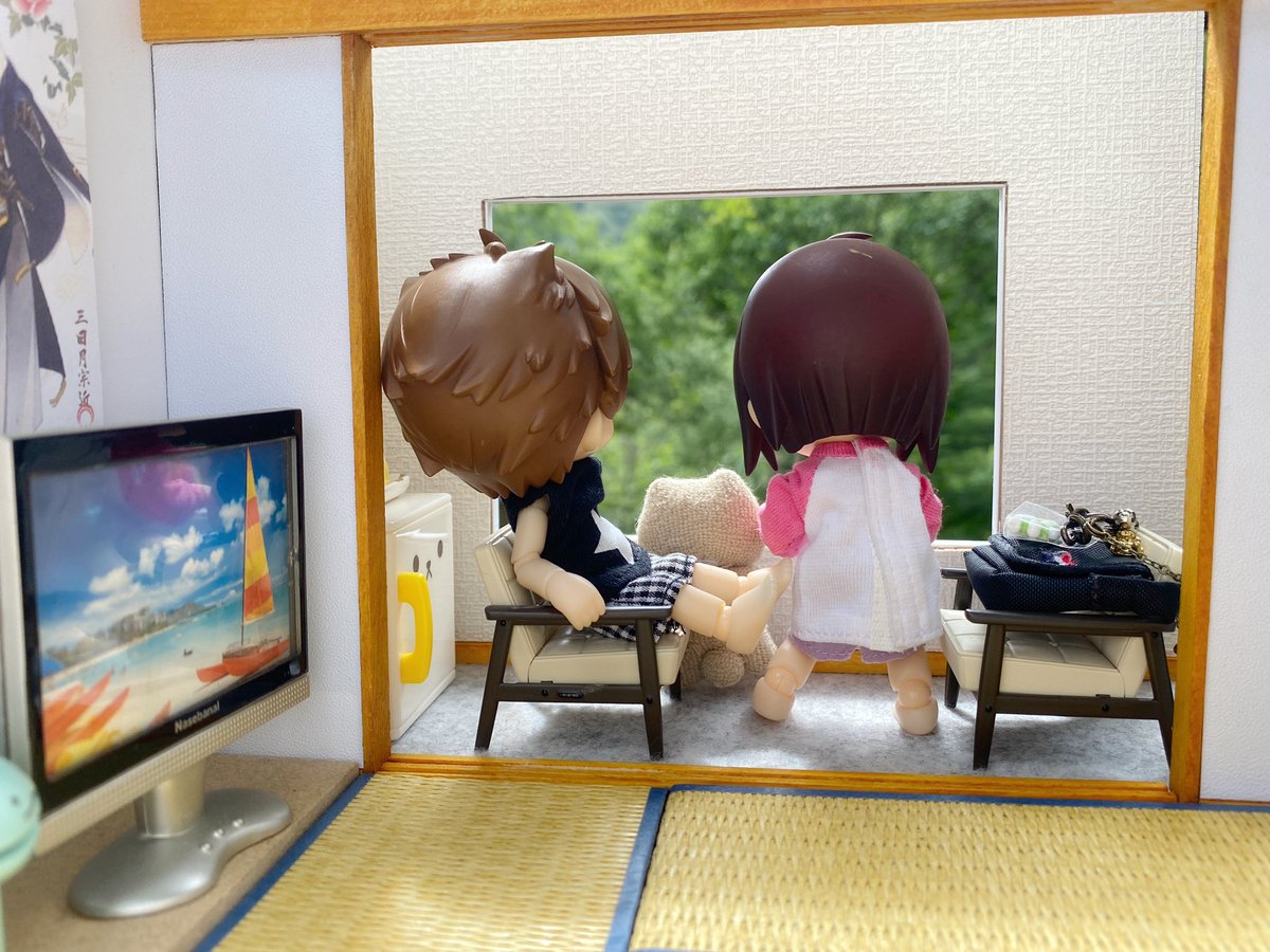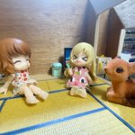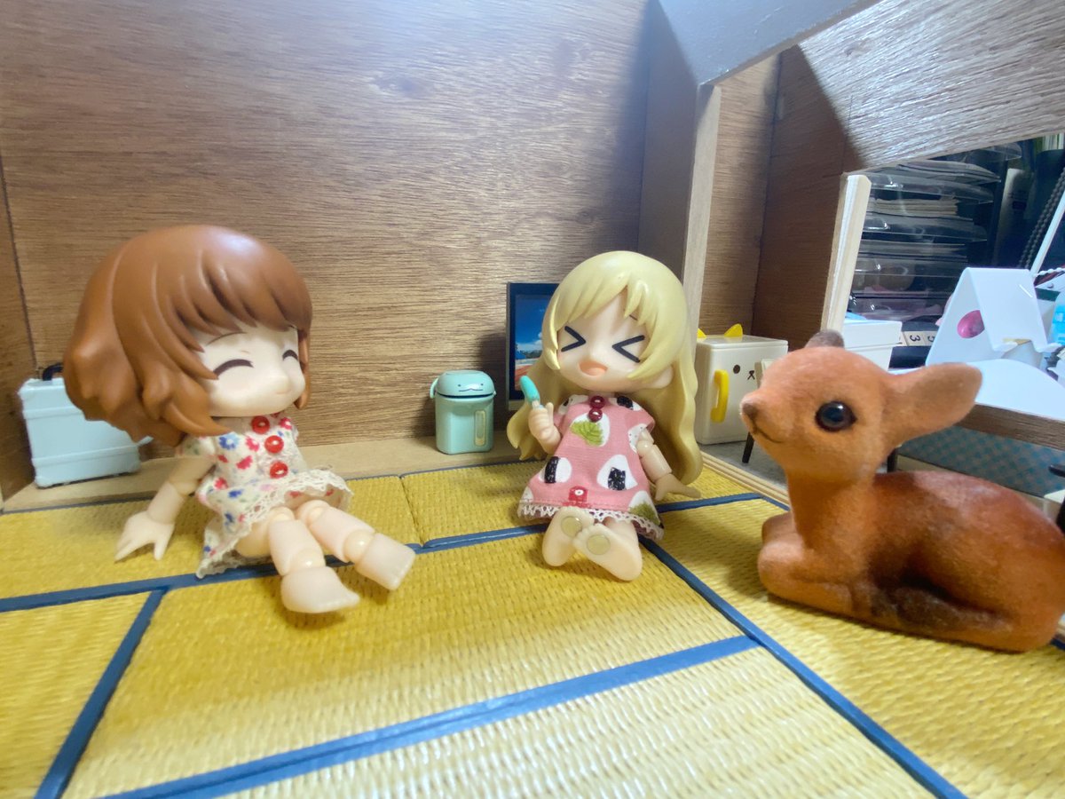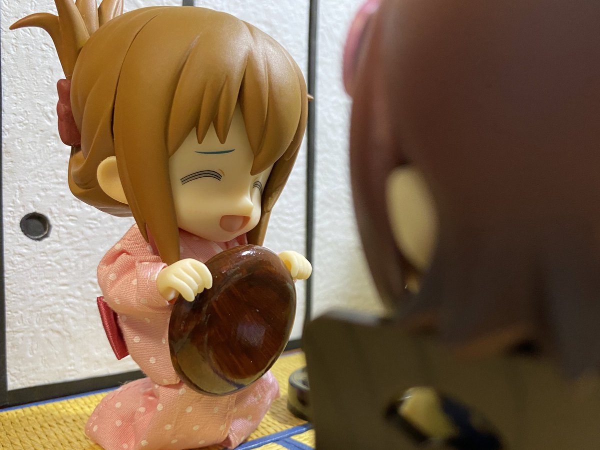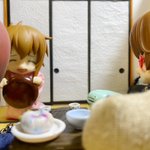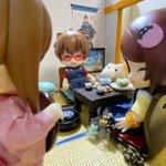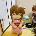 こんばんはです🌉 フリマで買った茶器セットも届きました😊 電ちゃんに仲居さんになってもらいましたけど、カワイイですね😆💕 お着物がよく似合ってます😊 #キューポッシュ #子ぐまのグリちゃん #キュポ和室