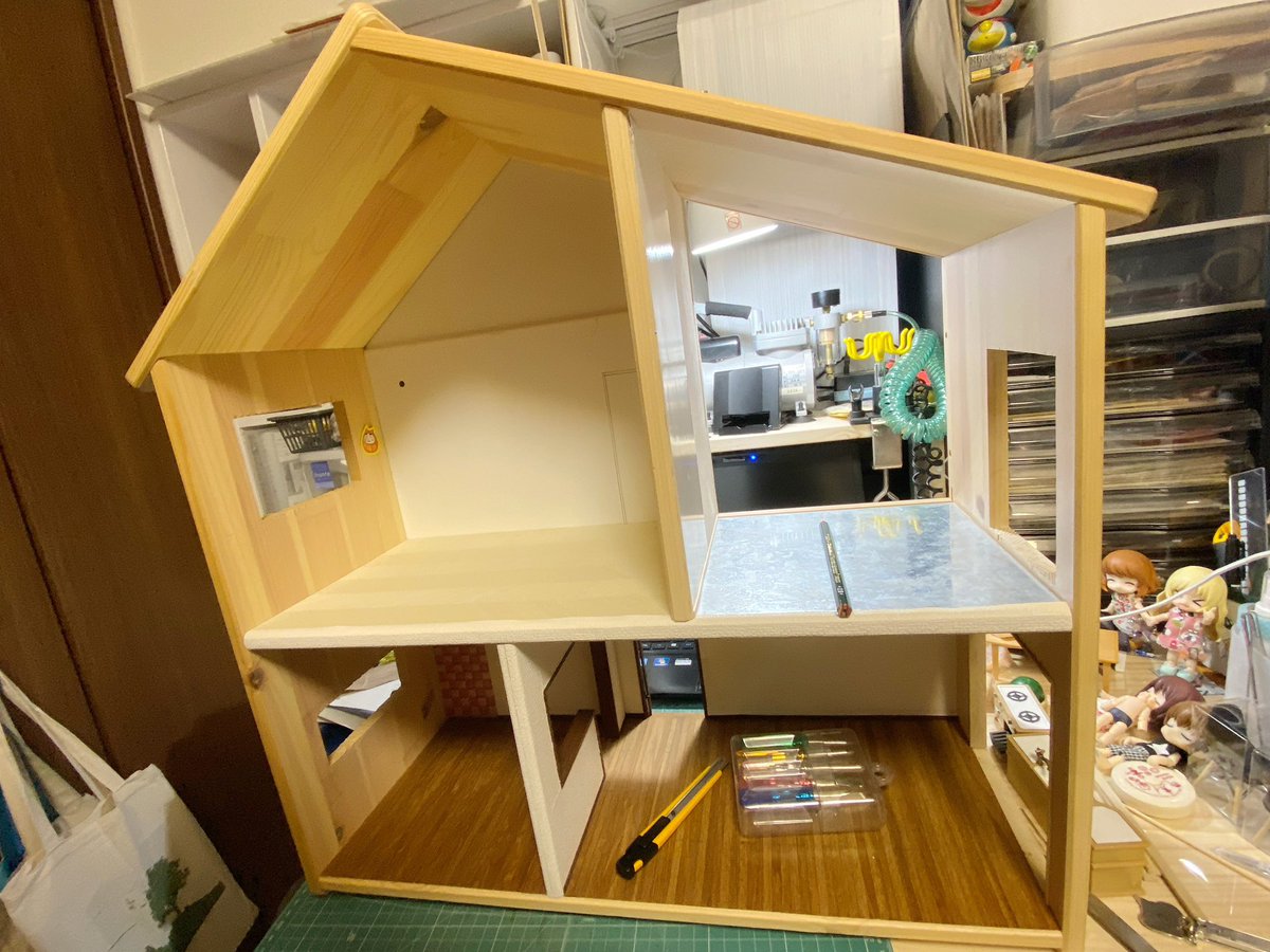 最近過去画ばかりなので、24日には少し撮ってあげようかしら☺️ 2階のこのコたちの寝室の奥に壁を付けないとですし、ドアも付けてあげないとですね☺️ カーテン縫わないとですね💦 #キューポッシュ #子ぐまのグリちゃん #キュポIKEAのお家