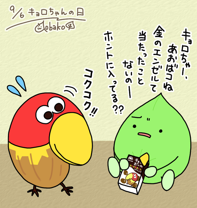 遠足のおやつに持っていくと溶けちゃって、「出てこない~💦」ってなる~(笑) If you take it as a snack for an excursion, it will melt and you will get "I will not come out.". #今日は何の日 #キョロちゃんの日 #森永チョコボールの日 #イラスト #illustration #くるぴょ~ん