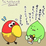 チョコミルク味 新発売~(笑) New release of chocolate milk flavor. #今日は何の日 #キョロちゃんの日 #森永チョコボールの日 #イラスト #illustration #くるぴょ~ん