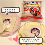 #ランチパックペコちゃん が人気なので私たちも便乗してみたよ👭アナタはどの娘がお好みかな❤️ …もはやホラーでしかない #ランチパックオマージュ #邪神ちゃんドロップキック #キョンシー姉妹 #羊毛フェルトフィギュア