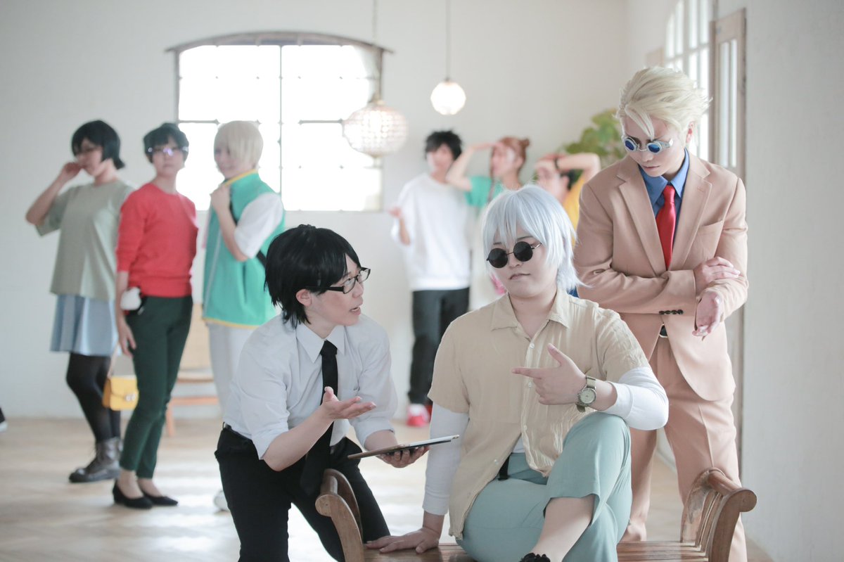 cosplay 大人組 「お願いですからこちらにお目通しを…!」 「うんうん後で見とくよ。」 「五条さん、そう言って放置するつもりでしょ。」 苦労人 伊地知 と 自由な学生諸君 Photo by @y_k1477 thanks♡ #キヨタカ主催じゅじゅつEDテーマ衣装あわせ20220703