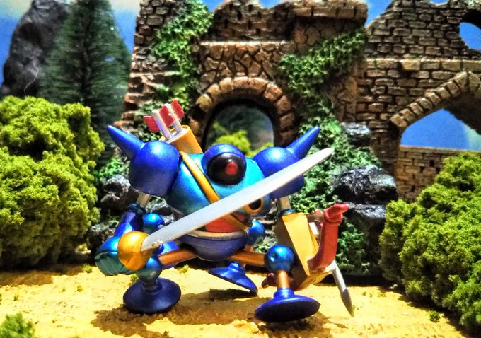 #夜のフィギュア撮影会 お題「早」(過去) キラーマシンが あらわれた! キラーマシンは こちらが みがまえるまえに おそいかかってきた! キラーマシンの こうげき! キラーマシンの こうげき! #ドラゴンクエスト #キラーマシン