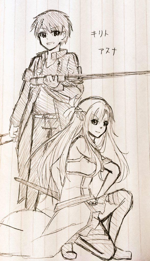 暑い日が続きますね。 今年のお盆は息子といっぱい遊びました。 お祭りもいっぱい行きました~ #SAO #キリアス #イラスト好きな人と繋がりたい #絵描きさんと繋がりたい #キリト #アスナ