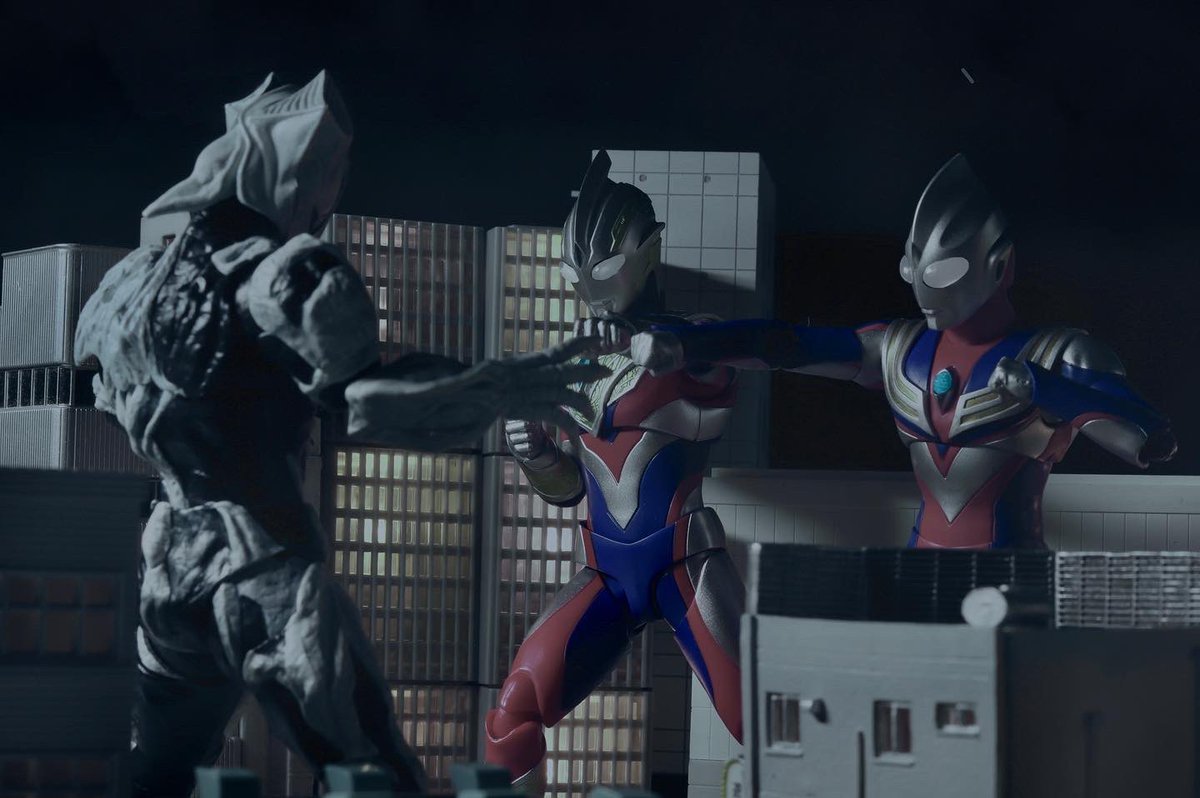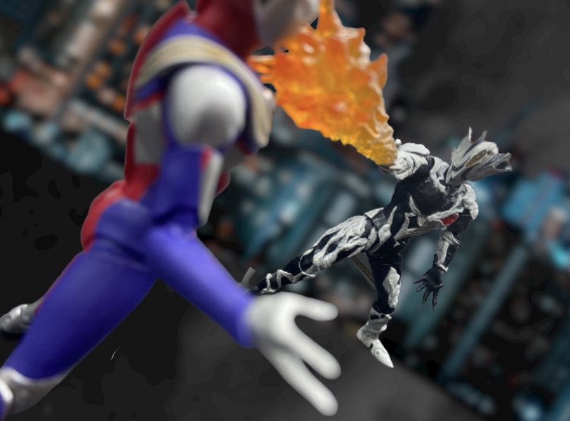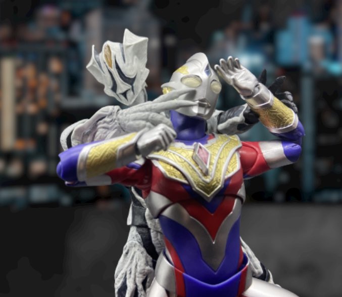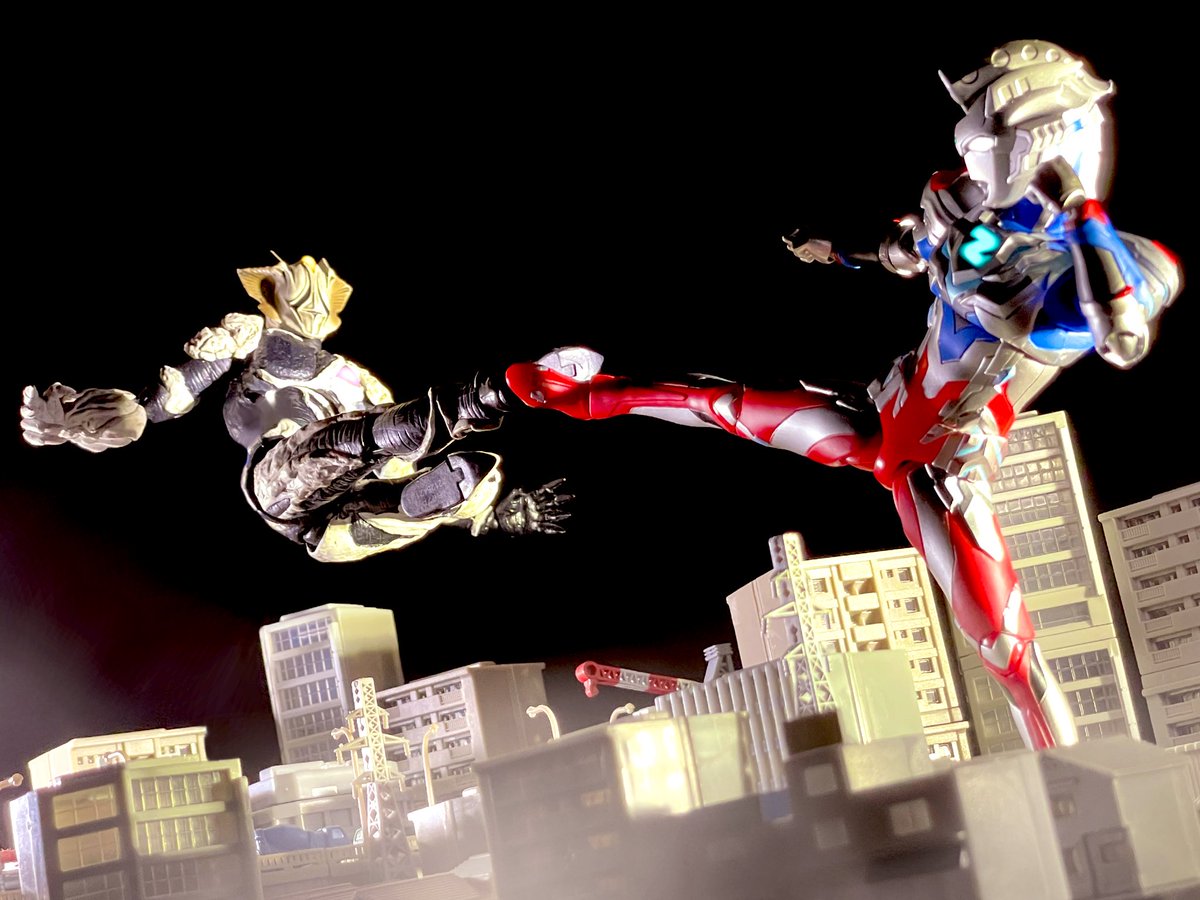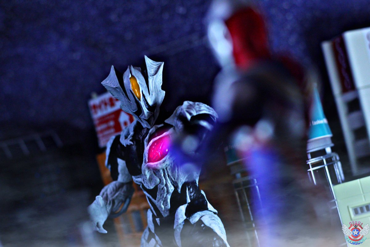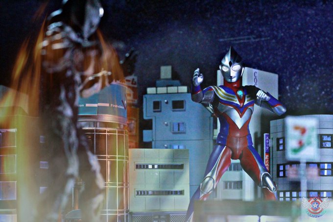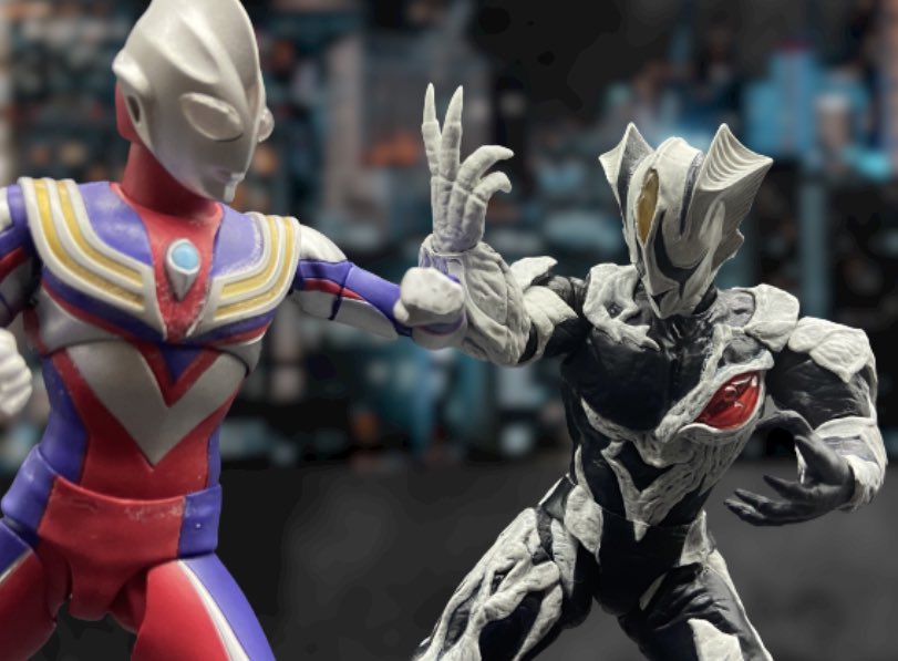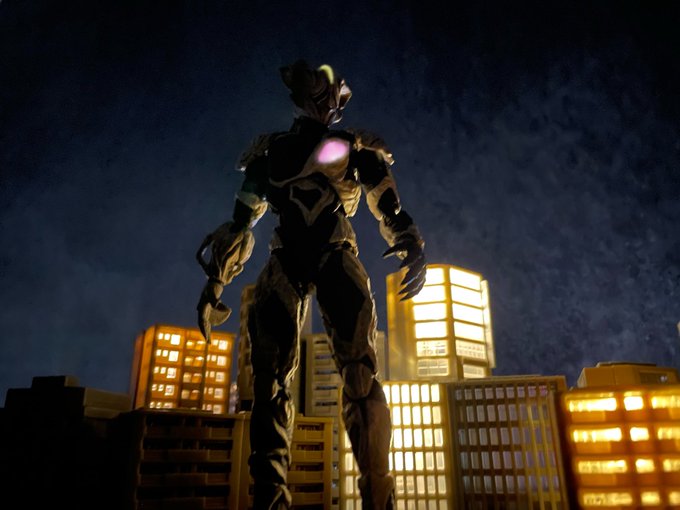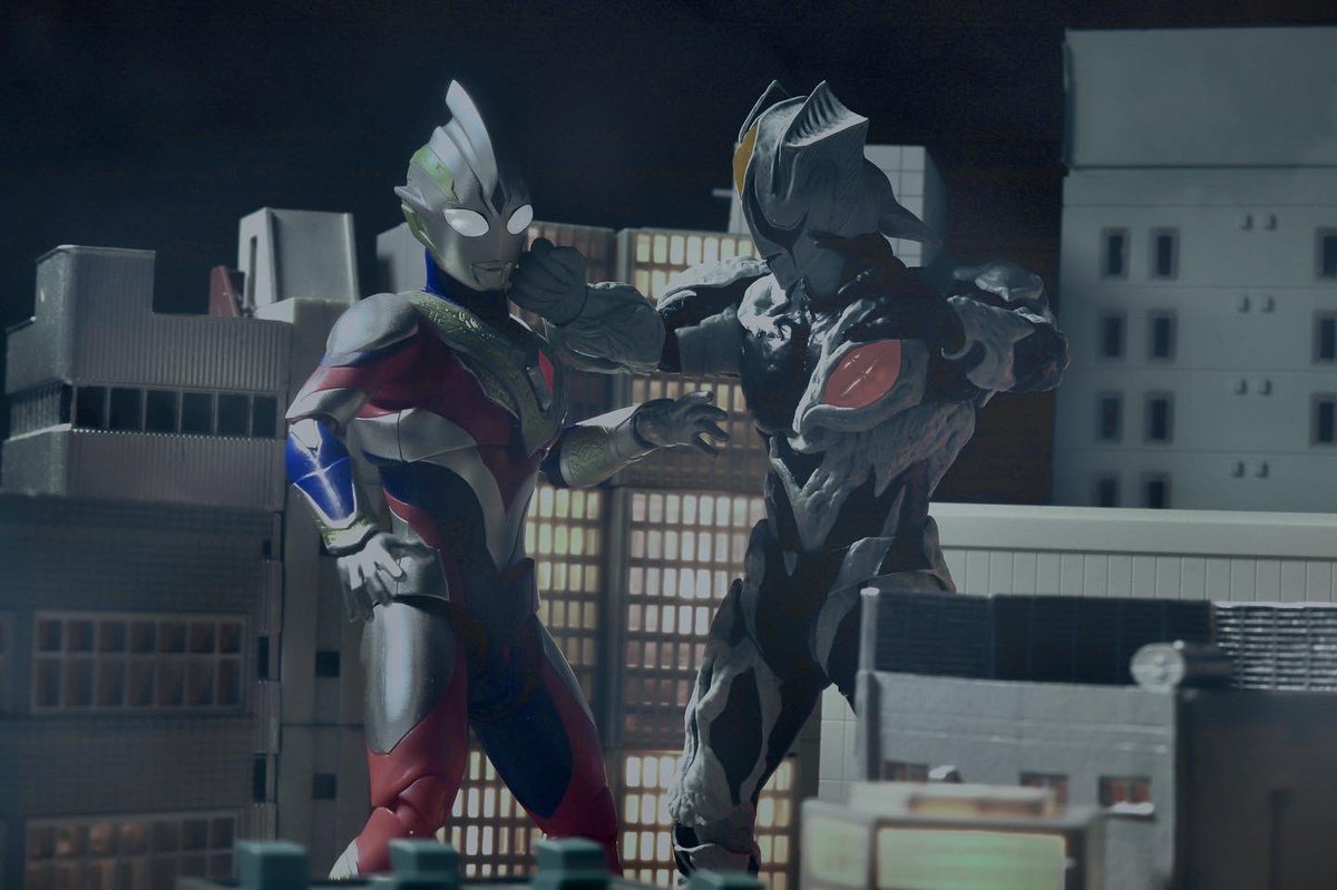 #夜のフィギュア撮影会 テーマ「敵対」 "悪魔の預言" #ウルトラマン #ウルトラマンティガ #キリエロイド #特撮 #ウルトラアーツ #ちいさな巨大特撮 #フィギュアーツ写真部 #フィギュア撮影友の会