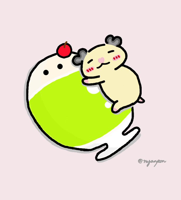『抱きまくら』 にゃんが取ったぬいぐるみに抱きついて寝るリリィ。 もちもちで気持ちいいでち。 #イラスト #ハムスター #キンクマ #キンクマハムスター #ゆるいイラスト #つぶ活 #つぶらな瞳の喫茶店 #指描き