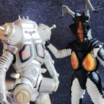 #夜のフィギュア撮影会 テーマ「嘘」 ゼ「キングジョーよ、今年は新しい出会いがあると出てる。」 キ「ゼットン、それ本当!?」 ゼ「嘘だよ。っておーい。ごめん、嘘だってば~。」 #ゼットン #キングジョー