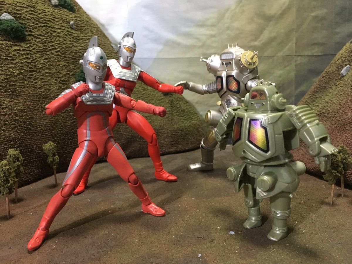#夜のフィギュア撮影会 テーマ「フリー」 ウルトラマン対キングジョー #ウルトラマン #キングジョー #特撮 #ウルトラアーツ #ちいさな巨大特撮 #フィギュアーツ写真部 #フィギュア撮影友の会