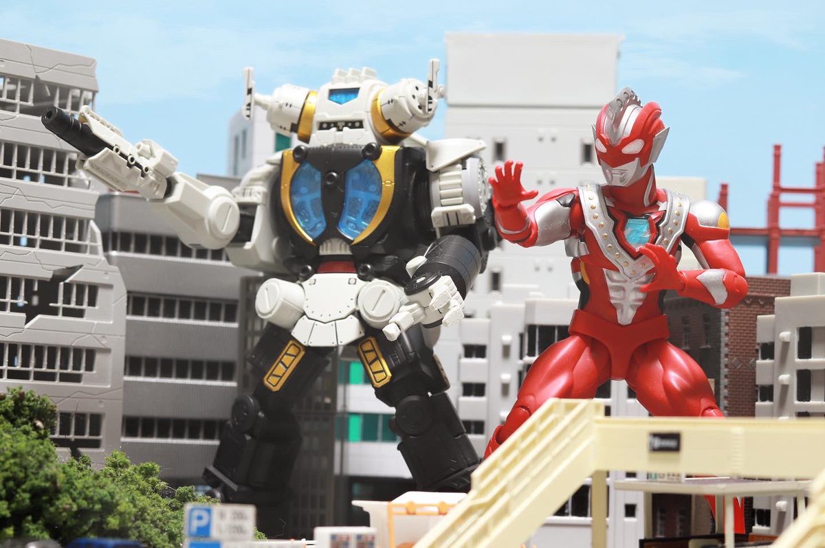 #夜のフィギュア撮影会 早め お題:防 過去 ストレイジとは地球防衛軍日本支部の対怪獣特殊空挺機甲部隊で対怪獣ロボット兵器特空機で頻発する怪獣災害に立ち向かう先鋭部隊である。 #ウルトラマンZ #セブンガー #ウインダム #キングジョーストレイジカスタム #ちいさな巨大特撮 #オモ写