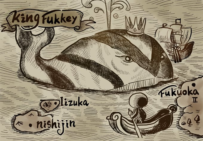 その昔、イメージマスコットとして「キングフッキー」というクジラがいた。神出鬼没なその姿は稀に目撃され、誰もが吾先に捕まえようと競い合った…。 刻は令和ー。ふたたびその姿を見せたのだった…。 …って 何の話⁉︎ww #ヴィーナスギャラリー #イラスト #キングフッキー